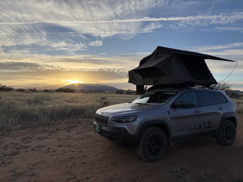 Why had we been looking for a Roof Top Tent? For three years we have been driving around the county in Howl and enjoying every minute of our adventure, but we could also see where we had been missing out. Howl, for all of it’s 15″ of ground clearance, is not an offroad vehicle. Well, maybe it could do it once. and then where would we be? Since we got the Jeep over a year ago we have taken Moro on some amazing off road jaunts in the Rocky Mountains of Colorado as well as the backside of Mt. Lemmon, here outside of Tucson. And as we drove the backwoods off-the-beaten-path trails, we noticed all these amazing campsites. On the side of mountain streams. In a giant field with the mountains looming over us. Deep in the woods with only the whisper of wind through the boughs. We needed to get us some of this. Thus, enter the RTT.
