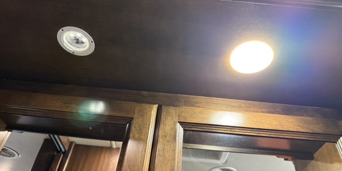 Lat week I noticed that one of the over sink lights in Howl, our 2016 Tiffin Allegro Open Road 34PA, had gotten very dim. Unscrewing the cover off (counter clockwise) showed that 3 of the diodes were very dim and the other 3 were not very bright.